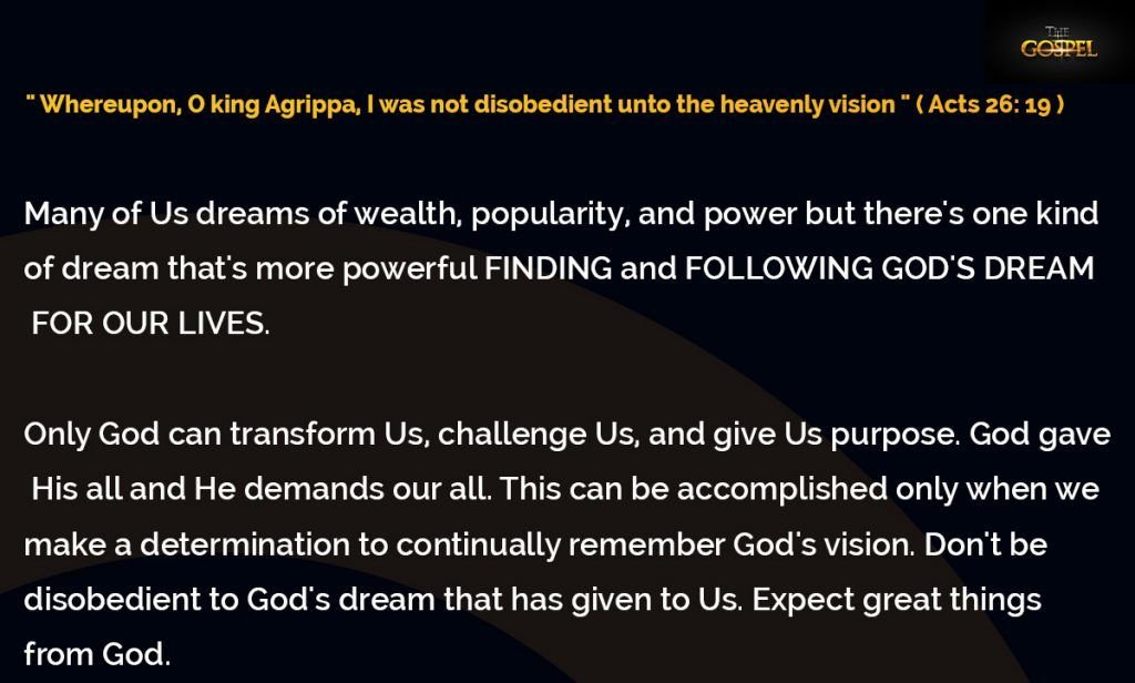 ” Whereupon, O king Agrippa, I was not disobedient unto the heavenly vision ” ( Acts 26: 19 )