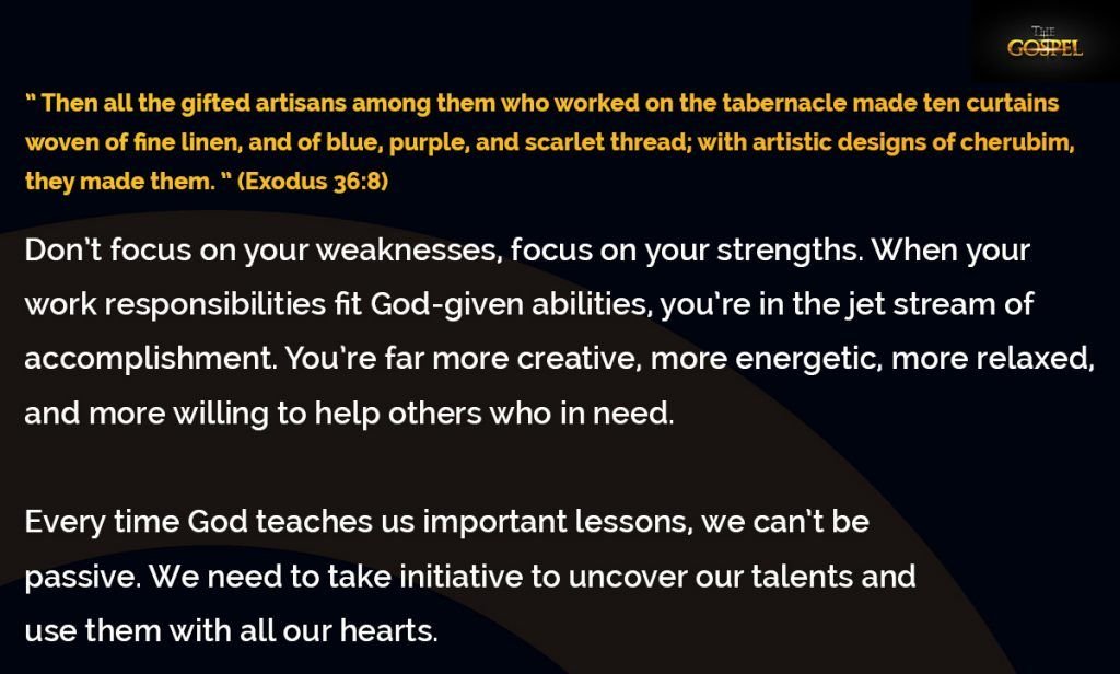 Every time God teaches us important lessons, we can’t be passive. We need to take initiative to uncover our talents and use them with all our hearts.